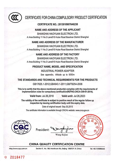 豪远电子3C证书