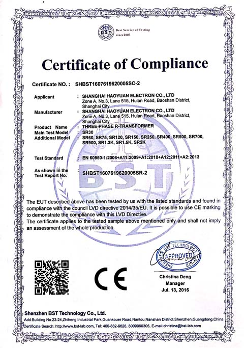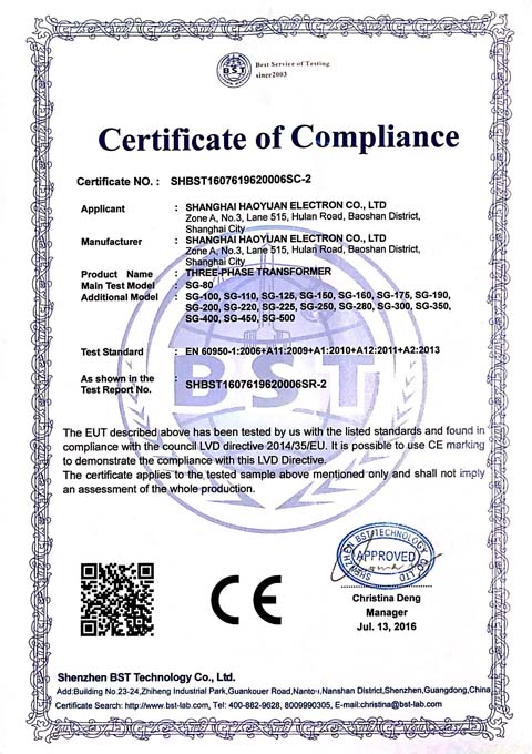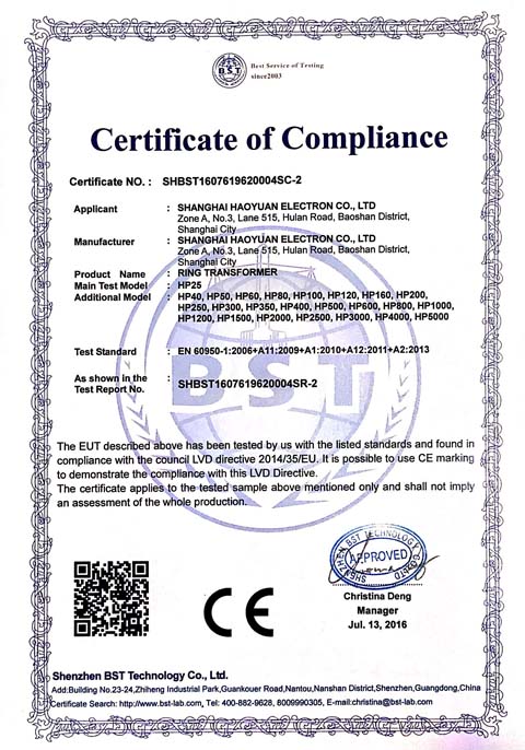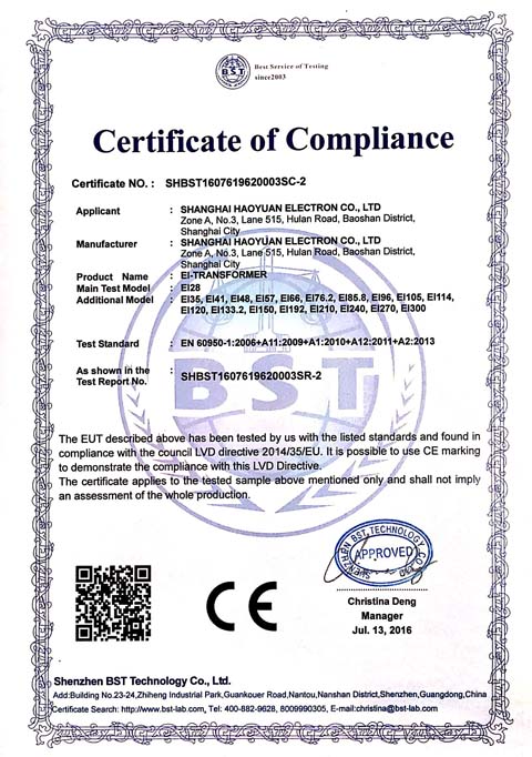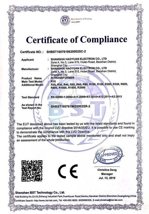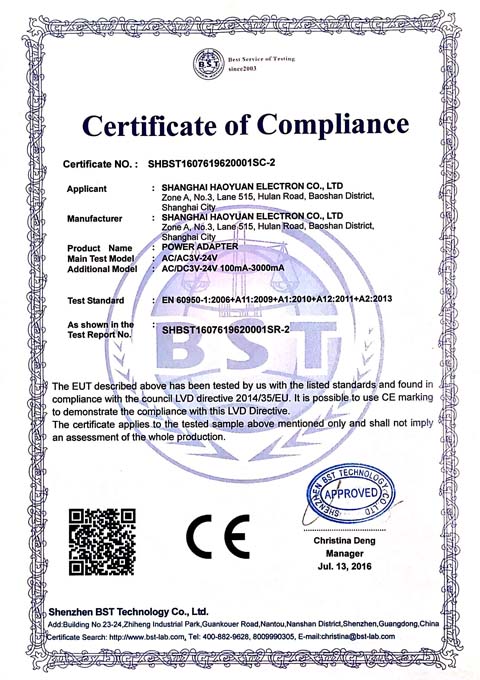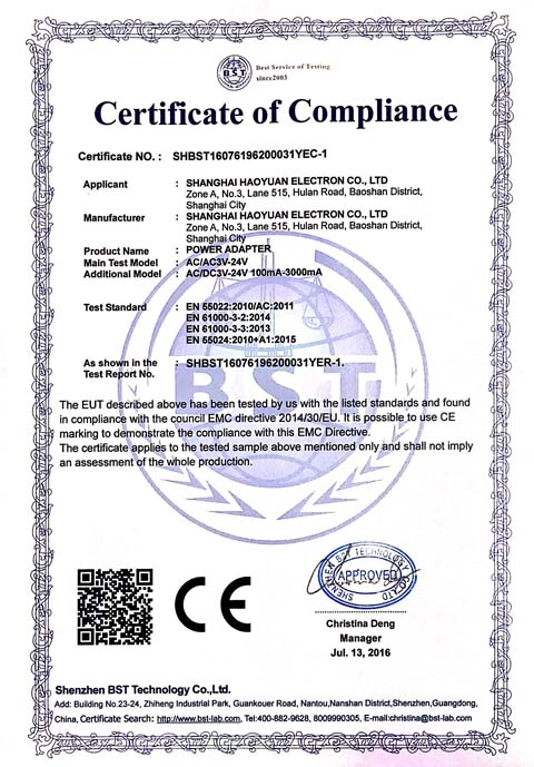 豪远电子CE证书